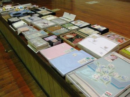 いろいろな品物が集まっていました。今年はお母さんたちの手作り品も