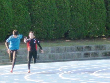 清山選手と成迫選手の模範走、みごとなバトンパスです。