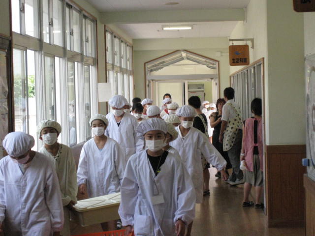給食準備の時間は、全職員で食器等の受け渡し、運搬の安全確保・配膳の確認を行うようにしています。特に手洗い、その後の消毒は確実に行うように注意しています。当番は、身支度等がきちんとできていないとできないように確認し、体調が不良の児童も当番を休ませるようにしています。ご家庭でも爪を切っているか確認をお願いいたします。