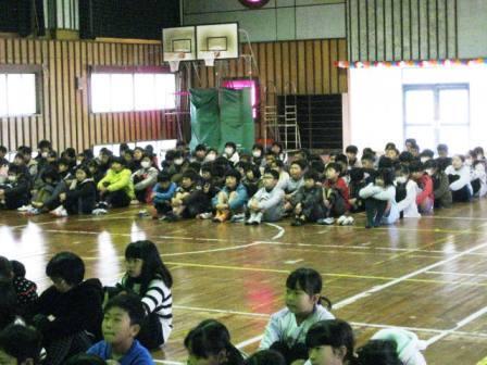 6年生(卒業生)のいない体育館は、何だか広く見えて寂しさを感じました。その後、3年生と1年生の代表児童に作文を発表してもらいました。