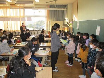 2月5日(金)1年生がいつも給食でお世話になっている6年生に、お礼の寄せ書きを届けに行きました。