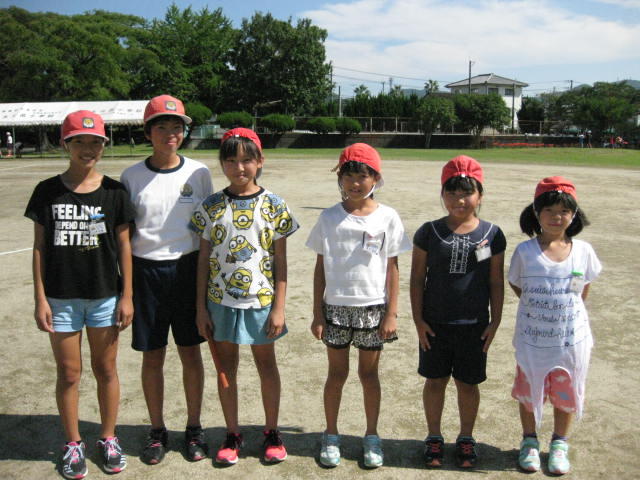 赤団の対団リレーのメンバーです。最後の競技です。精一杯頑張ってください。