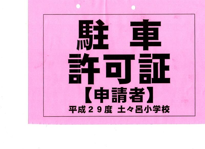 ピンク色の駐車証は、校内への駐車を申請された方に出させてもらったもので、体育館側などに止めてもらうことになります。
