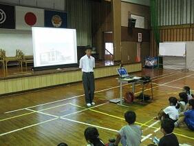 体育館に元気な顔が揃いましたそろいました。五ヶ瀬中等教育学校に進学した吉田祐樹さんが来校し、中学校の様子を紹介してくれました。