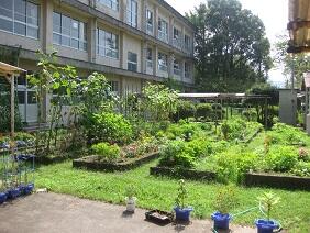 学級園の草花も暑さのためにぐったりとしています。