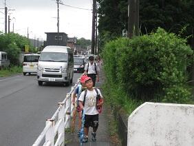 朝は小雨が降ったり止んだりしていました。登校日の朝、校門で子どもたちがどんな様子でやってくるのか待っていました。