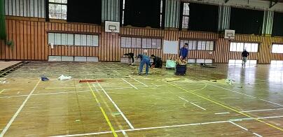 体育館の床張替工事始まる