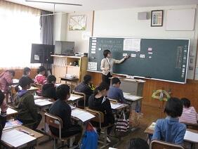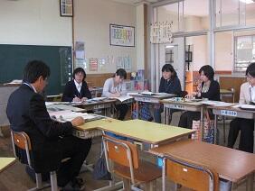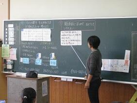 今回は学級担任中心に授業をおこない、授業の進め方や児童へのことばかけや対応の仕方などについて見てもらいました。