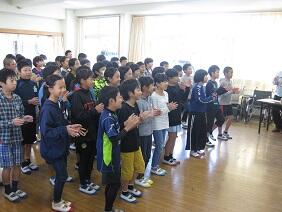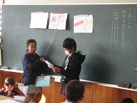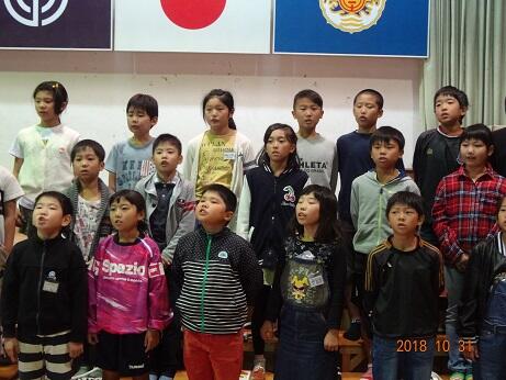 本番前に10月31日の全校朝会において全校児童の前で発表をしました。
