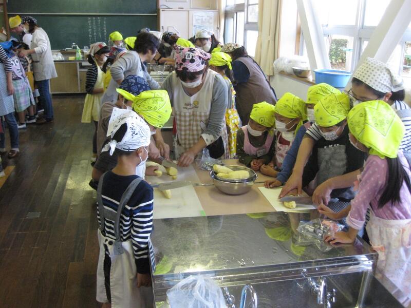 校内の畑で2年生が育てたおいもを使ってみんなでおいもパーティーを行いました。調理に御協力いただいありがとうざいました。