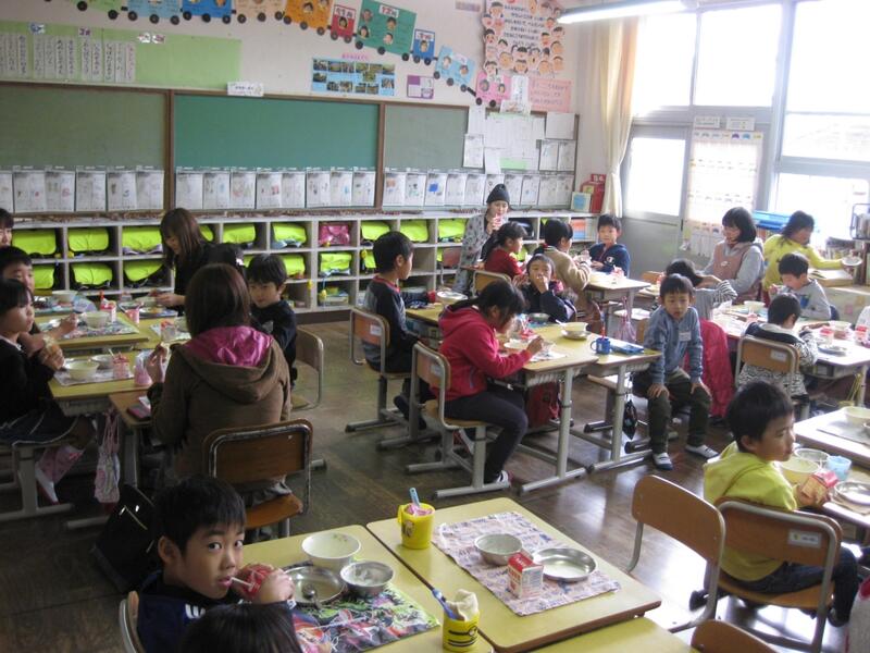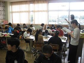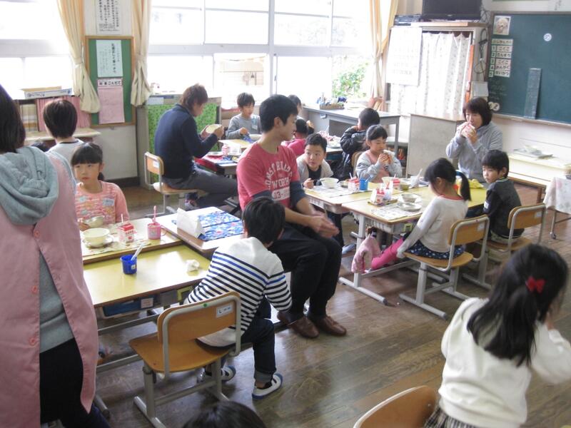 その後、学級に分かれていただき、子どもたちと試食をしていただきました。
