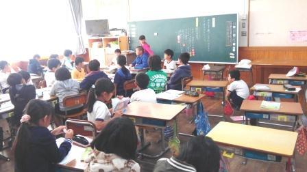 次に、3年生の算数の授業の様子です。28人にて、全員座れるようにするには、5人がけの長いすがいくつ必要かといった問題を考えています。