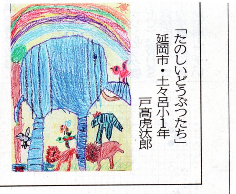 11月14日の宮崎日々新聞 県北版の「かりぼし往来」という児童・生徒の作品を紹介する欄に 1年生の戸高虎汰郎さんの「たのしいどうぶつたち」という作品が掲載されました。