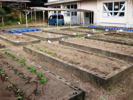第2回花壇コンクール開催予定 春に向けて学級園も準備を進めています。花の苗を植えました。どんな花が咲くのでしょうか。