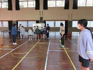下級生と6年生に分かれて動きや呼びかけの練習をしています。