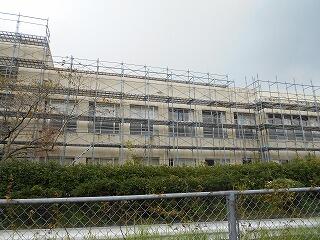 今日から、体育館外装及び防水の改修工事が始まりました。校舎改修工事時引き続き、学校改修第2弾です。とてもありがたいことです。