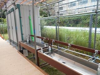 プレハブ教室のとなりには、トイレ・水場も設置。
