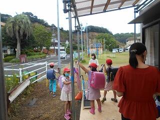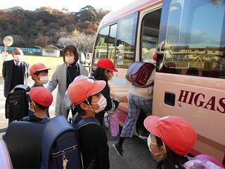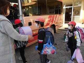 今日から3日間、土々呂小学校での合同学習を実施します。1時間終了後、バスに乗って土々呂小へ向かいました。