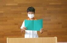 学校長の話の後は、児童代表作文の発表。運動会に向けて副団長としての熱い思いを発表しました。