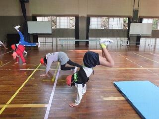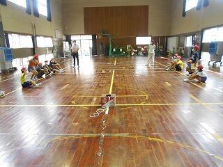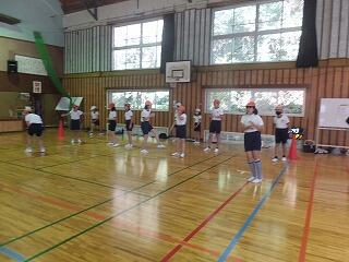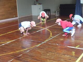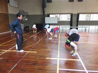 まずは、準備運動として、いろいろな動きの基礎練習をしました。今日のねらいの運動に繋げます。