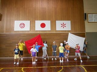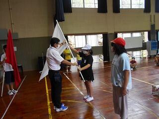 そして、団長によるくじ引きです。今年度の団の色が決定し、団長に団旗が授与されました。
