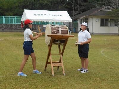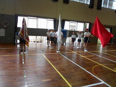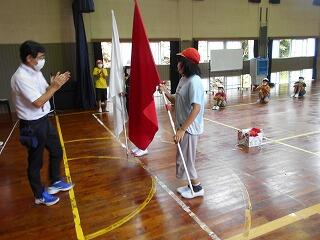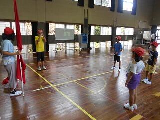 9月2日(金)、昨日のA団・B団の発表に続き、結団式を実施しました。体育委員会の子どもたちが司会進行を努めました。