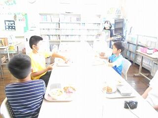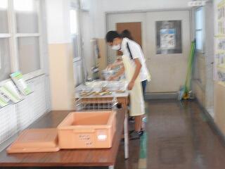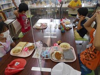 改修工事のためにランチルームが使えないので、図書室で給食を摂ることになりました。しばらくは、図書室が、ランチルームとの兼用になります。