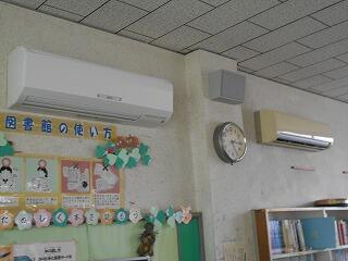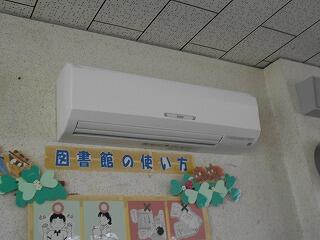 図書室が、ランチルーム兼用になるということで、念願のエアコンを増設していただきました。