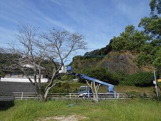 運動場側から歩道側にせり出していた樹木及び枝を伐採していただきました。樹木及び枝が老いて、下の歩道(通学路)に落ちてきそうになったためです。ありがとうございました。