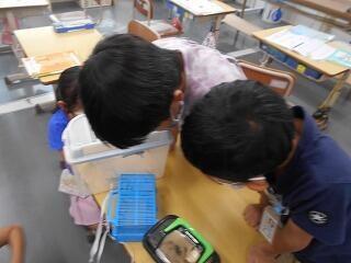 理科の学習で、夏の生き物さがしをしました。30分足らずで、あっという間にたくさんの昆虫が発見できました。