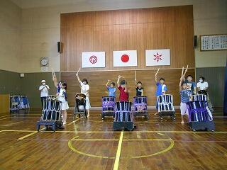 終了後、放課後子ども教室を参観しました。現在子どもたちは、「日向十五夜太鼓」の方々のご指導により、太鼓の練習を行っています。今日は、その発表会でした。