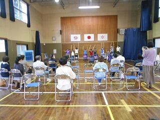 始業式終了後、準備・片付けも全員で行います。これが名水っ子です。