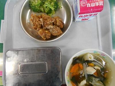 今日の給食は、リクエスト給食。名水っ子も大好き「からあげ」でした。
