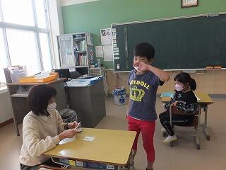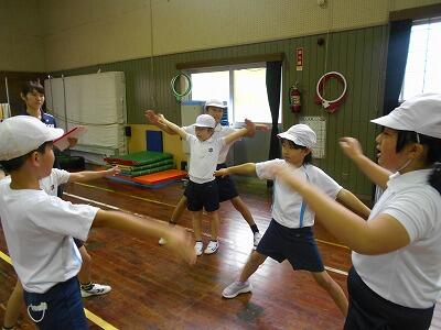 4年生は運動場で、5年生は体育館で、体育の学習を実施しました。各学年ごとに交流も交えながら、楽しい活動する姿が見られました。