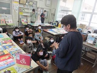 朝の時間、読み聞かせ会を実施しました。今月も、学校運営協議会委員でもある姫田様による読み聞かせです。