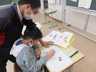 外国語専科、ALTの2人の先生により、ほぼほぼマンツーマンでの学習が進められています。