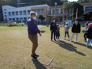 今日は、みんなで遊ぶ日。赤団・白団に分かれ、団長を中心にキックベースをしました。ALTのニコラス先生もPlay Togethe!