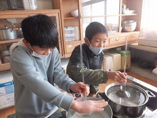 今日は、2回目の5年生の調理実習。今回はご飯とみそ汁の調理でした。