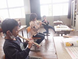 土々呂小学校との合同学習に向けて、「こぎつね」の合奏練習に取り組んでいます。いっしょうけんめい練習する子どもたちの姿が見られました。
