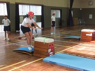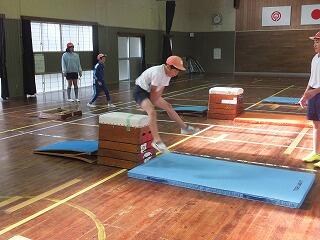 4・5年生は、現在、器械運動(マット・跳び箱)のチャレンジしています。