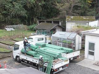 今日は、足場を組む資材が、次から次へと運ばれてきました。今週中には足場が組まれるそうです。2月いっぱいまで工事が続く予定です。