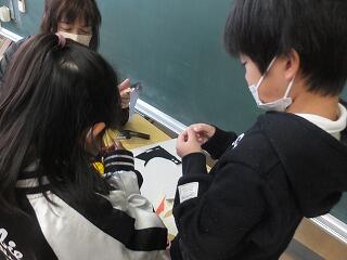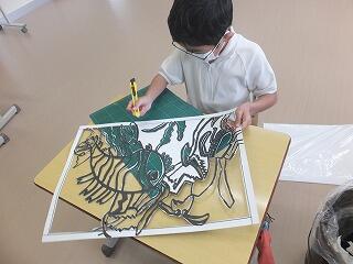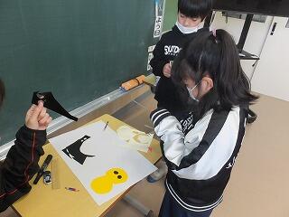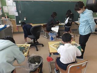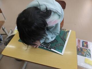 2・3年生は、現在、版画の学習に取り組んでいます。2年生は「紙はんが」、3年生は「ステンシル版画」です。とても一生懸命に集中して取り組む姿が
