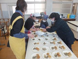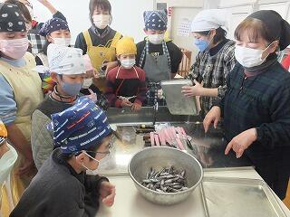 今日は、総合的な学習の時間・生活科、家庭科を関連させた体験活動「地元の魚をつかって料理を作ろう」を実施し