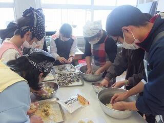 ました。主な内容は、「めひかりの梅チーズはさみ揚げ」の調理実習でした。昨年度の「めひかりの蒲焼き風丼」に