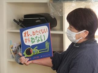 8月は夏休みということもあり読み聞かせができなかったので、今回は、「戦争」の本と、9月の「敬老の日」にちなんだ本や「おばけ」の本を、ご紹介くださいました。