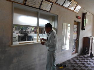 職員室内から見て玄関の方向に、小窓があります。来客対応の窓だったようですが、今は使用できなくなっています。