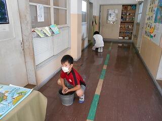 名水小の清掃場所は、曜日によって場所が変わります。しかも、分担された一人一人の清掃範囲も広くなります。しかし、15分の清掃時間、時間いっぱい、黙々と清掃に取り組む姿が随所に見られます。