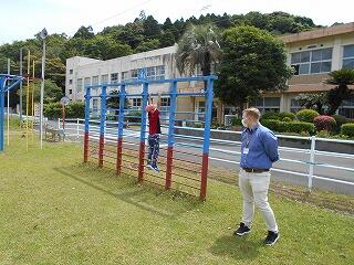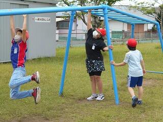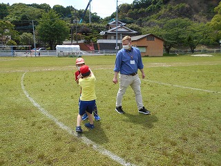 今日は、ALT訪問の日。ニコラス先生と一緒に遊ぶ子どもたちの姿が見られました。