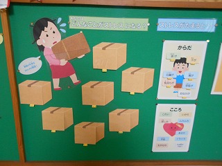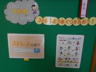養護教諭作成の5月掲示です。今回は、「ストレスとうまくつきあおう!」です。