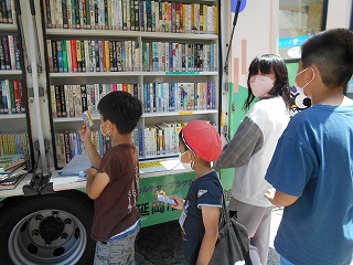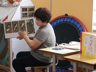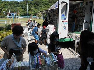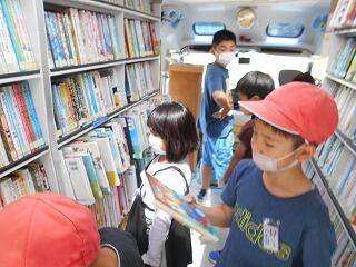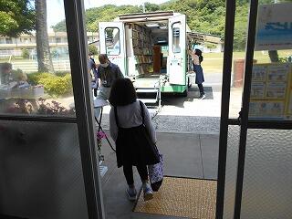 ふくろう号が来る日は、子どもたちみんな楽しげ。ふくろう号に乗せてあるたくさんの本を前に、いっしょうけんめいに、自分の読みたい本を探す姿が見られました。